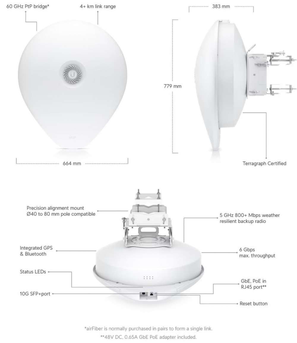 Több mint 4 km-es, több gigabites, 60 GHz-es híd SFP+ támogatással.