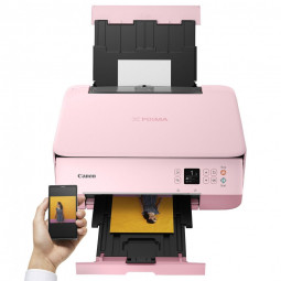 A(z) Canon PIXMA TS5352A rózsaszín kompakt és multifunkciós kivitelének hála képes nyomtatni, szkennelni és fénymásolni. Vagyis elvégez minden dokumentumokkal kapcsolatos feladatot. A(z) Canon PIXMA TS5352A rózsaszín tintasugaras nyomtató papír formátuma A4, A5 és A6. Lapadagoló tálcájának maximális kapacitása 100 lap. Összesen 20 darab dokumentum kerülhet biztonságosan a kimeneti tálcába.